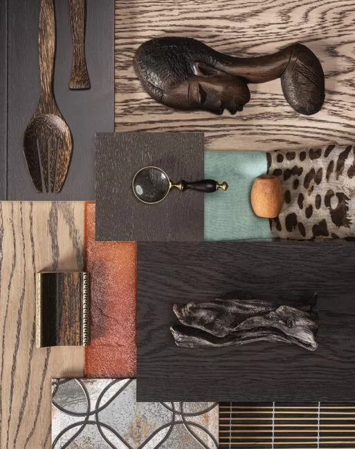 Moodboard‑коллекции Coswick с гармоничными сочетаниями оттенков и текстур паркетной доски, которые помогают дизайнерам и архитекторам быстро подбирать решения для интерьеров в едином стиле и настроении.