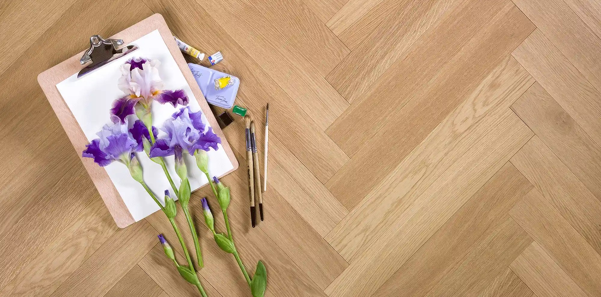 Декор Сиена натуральная — это прикосновение к природе, где каждая доска паркета искусно переплетена натуральными оттенками. Пол отражает простоту и естественность, будто каждая доска олицетворяет собой нежность и ненавязчивую красоту окружающего мира. Пройдя по этому паркету, словно прогуливаетесь в лучах, ощущая мягкое прикосновение природы и тепло ее объятий.