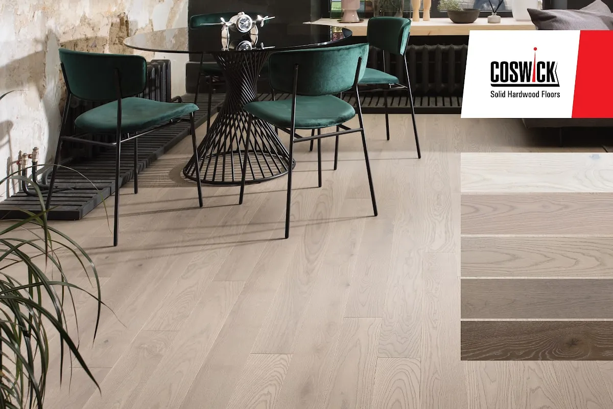 Компания Косвик дарит новые возможности для воплощения оригинальных интерьерных идей. Коллекцию паркетных напольных покрытий пополнили пять актуальных оттенков – дуб Кристально белый, Серый вельвет и Дымчатый топаз, ясень Лавандовый и Атлантик.