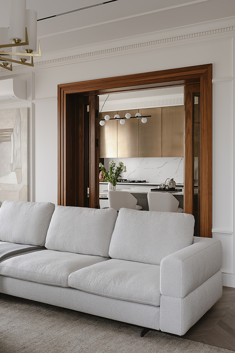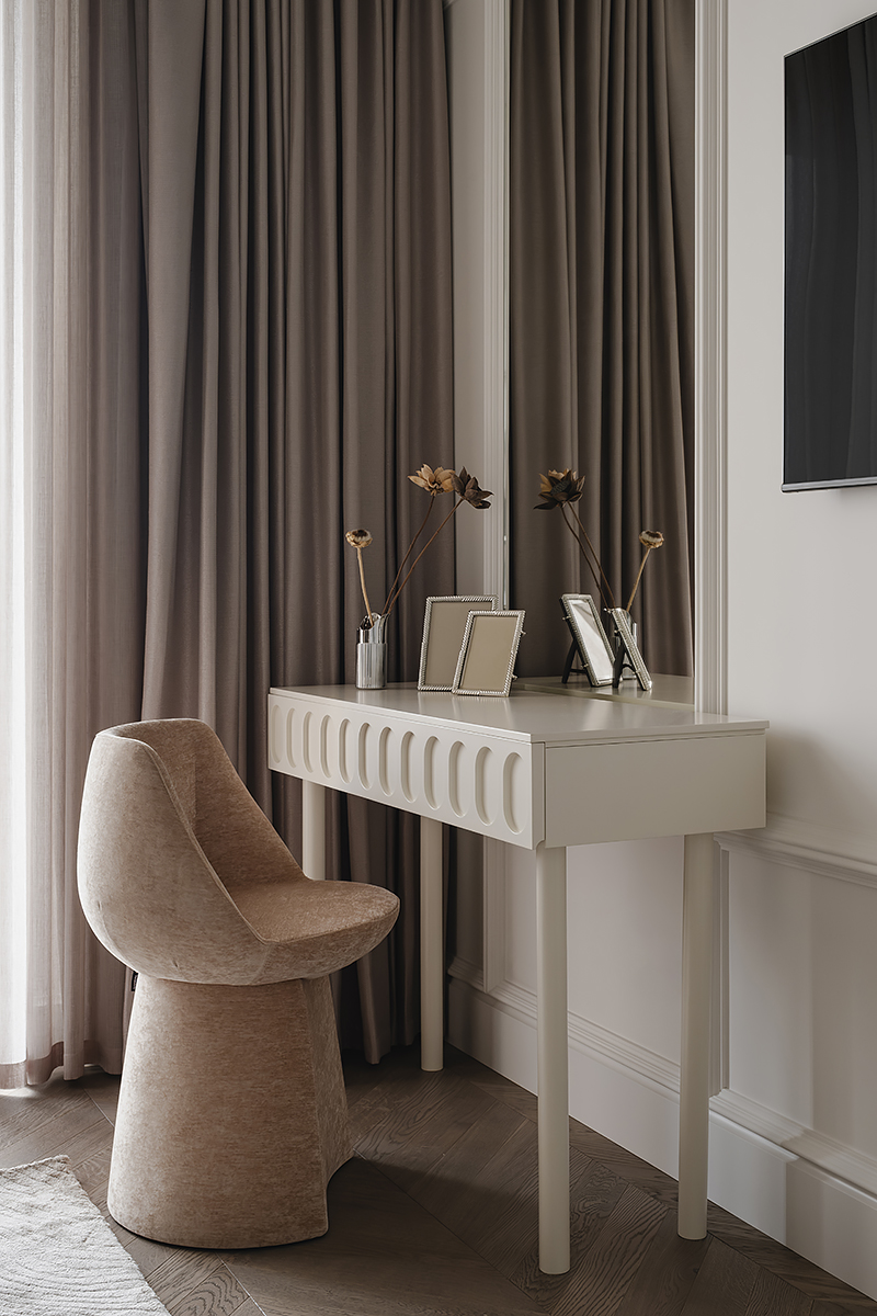 Интерьер этой квартиры выстроен как цельное и спокойное пространство, где каждая зона логично встроена в общую архитектуру. В основе проекта — сочетание эстетики, функциональности и любви к натуральным материалам.