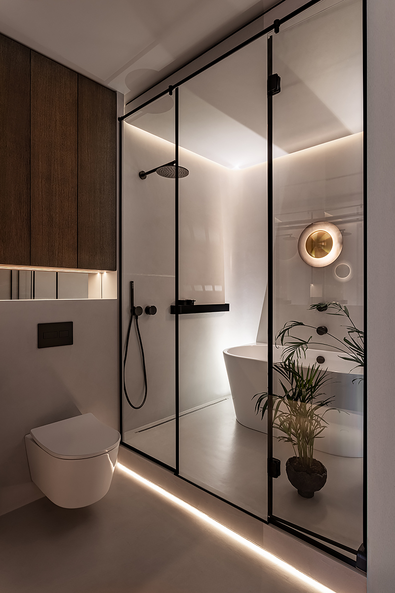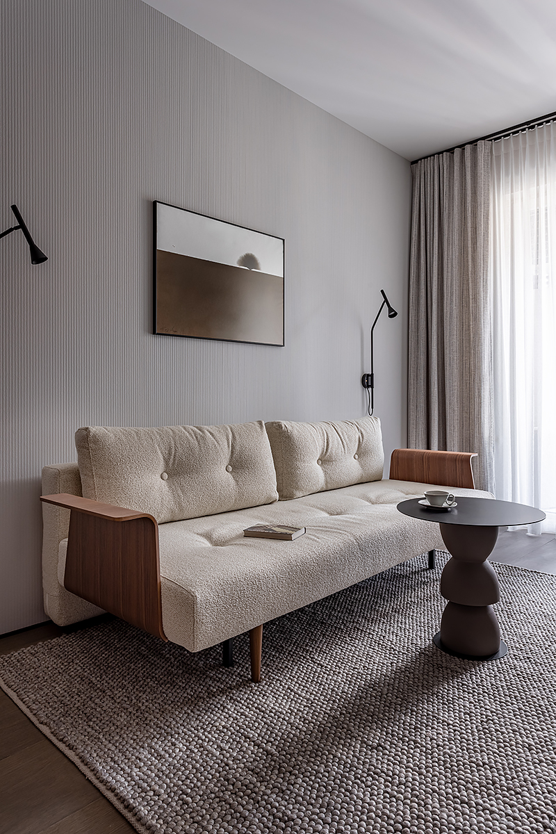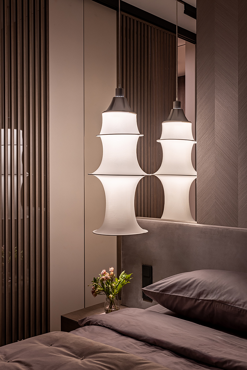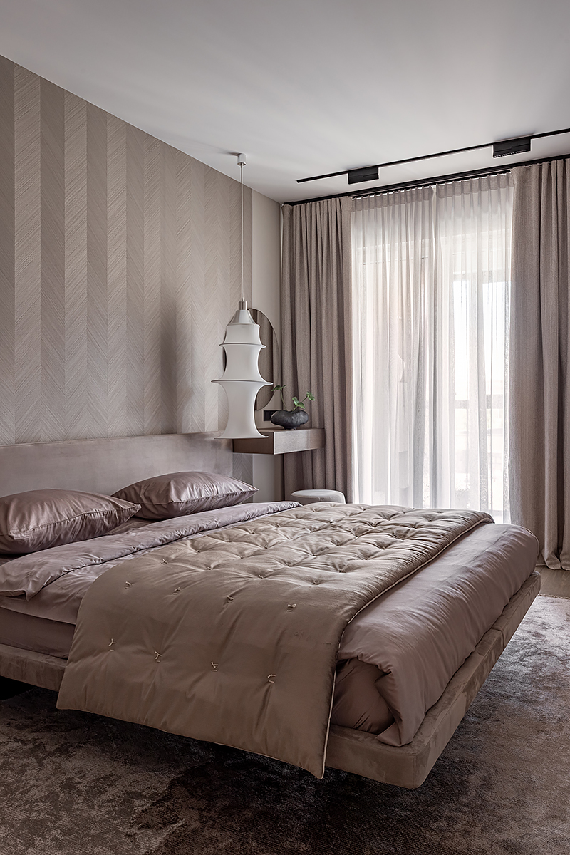 Идея мягко «обнимающего» пространства стала основой для интеграции восточной философии и искусства. Интерьер оживляют работы белорусских художников и ремесленников: графика тушью, акварели, керамика ручной работы. Эти детали формируют атмосферу баланса света и тени, дня и ночи, лёгкости и глубины.