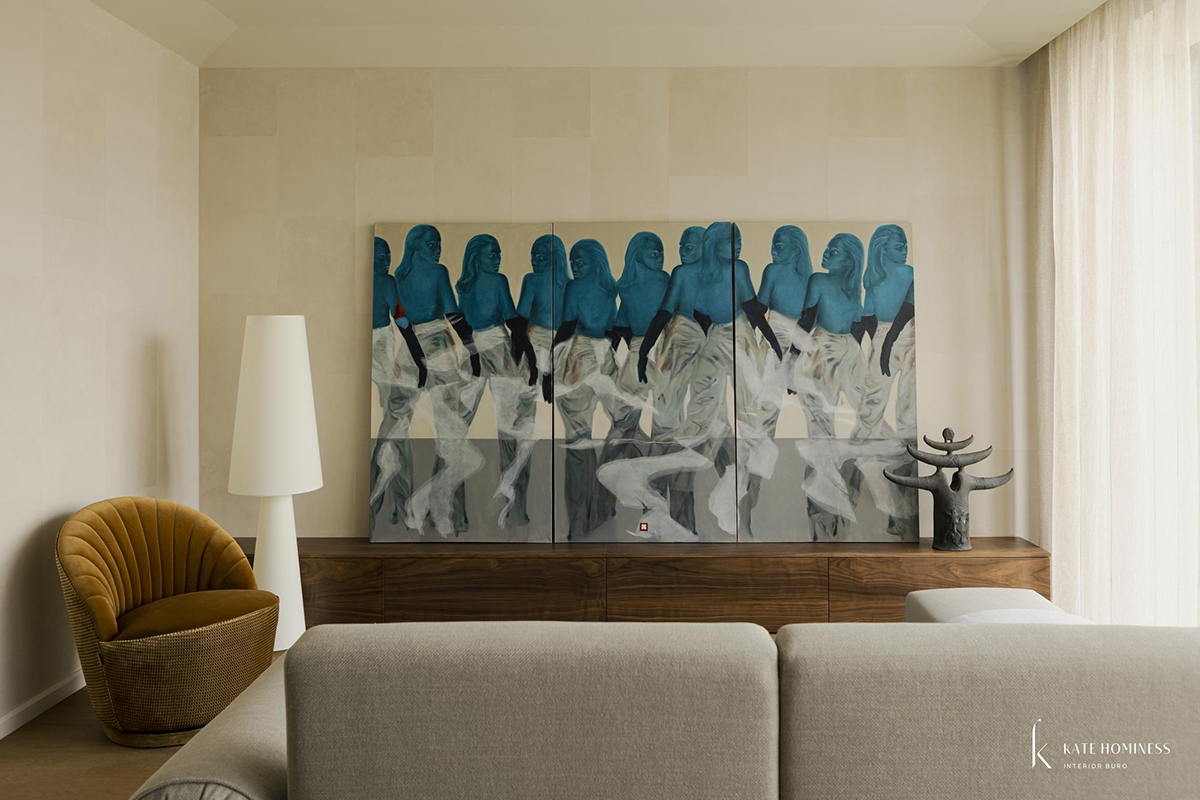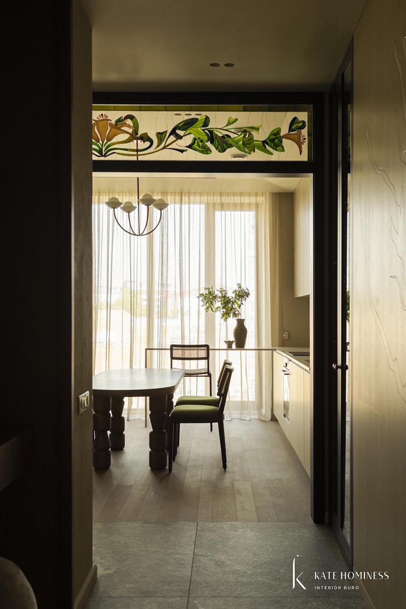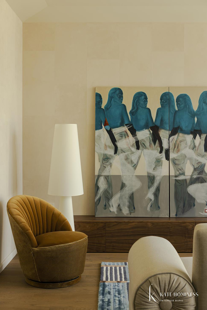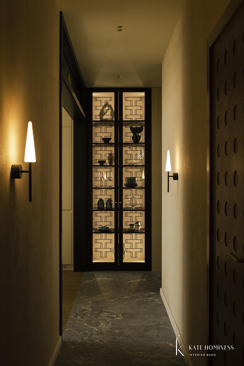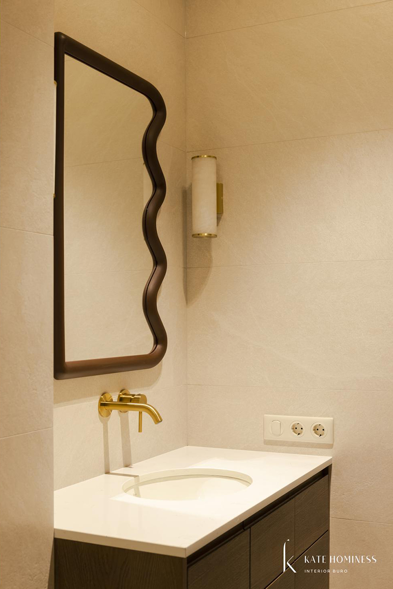 В отделке стен дизайнеры добились мягкого объёма и игры теней, сохранив естественность и спокойствие. Круглые фрезеровки на дверях добавляют интерьеру глубины и многослойности.
