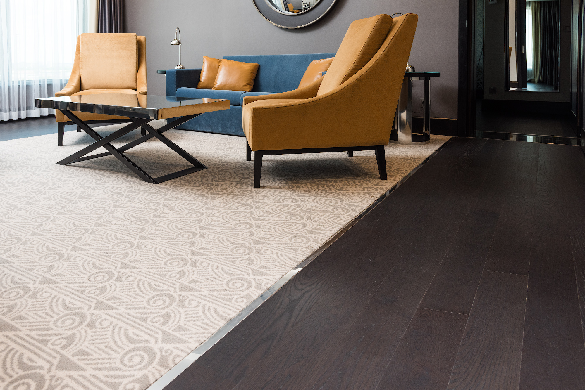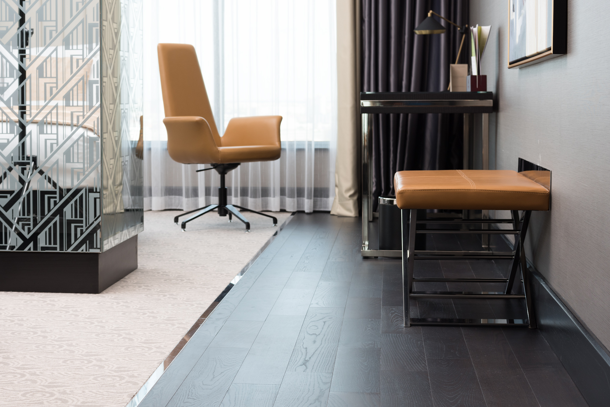 В проекте использована паркетная доска Coswick Дуб Темный шоколад.