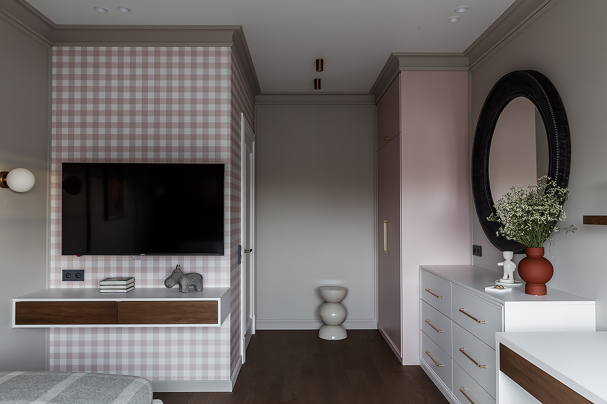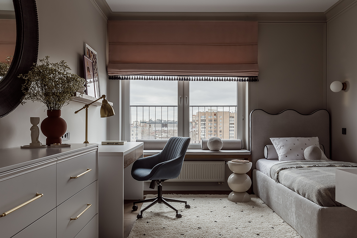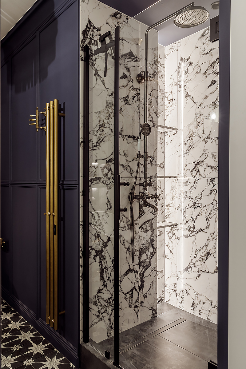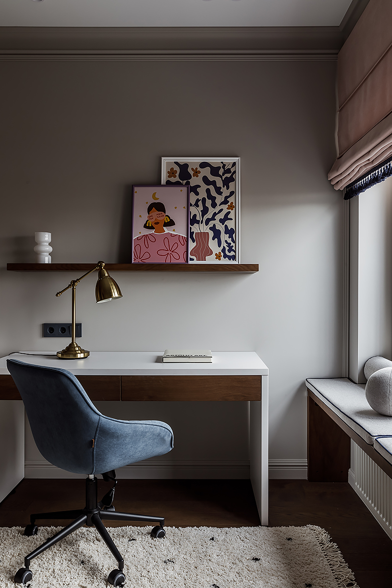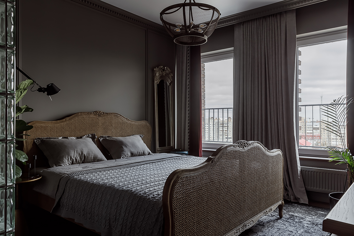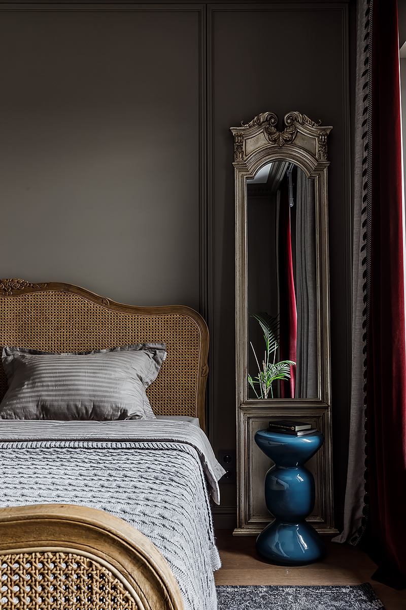 Разные элементы дизайна собираются в единый образ благодаря гармоничному сочетанию материалов и акцентов. Здесь нет строгих стилистических рамок: в отделке и мебели проявляется тяга к классике, в бетоне, металле и коже — уверенная брутальность натуральных фактур, а в образах коней, встречающихся в разных формах почти в каждой комнате, — лёгкая ирония и эмоциональность. Всё это создаёт атмосферу подлинности и уюта, где каждая деталь несёт свою историю, а не просто служит декорацией.