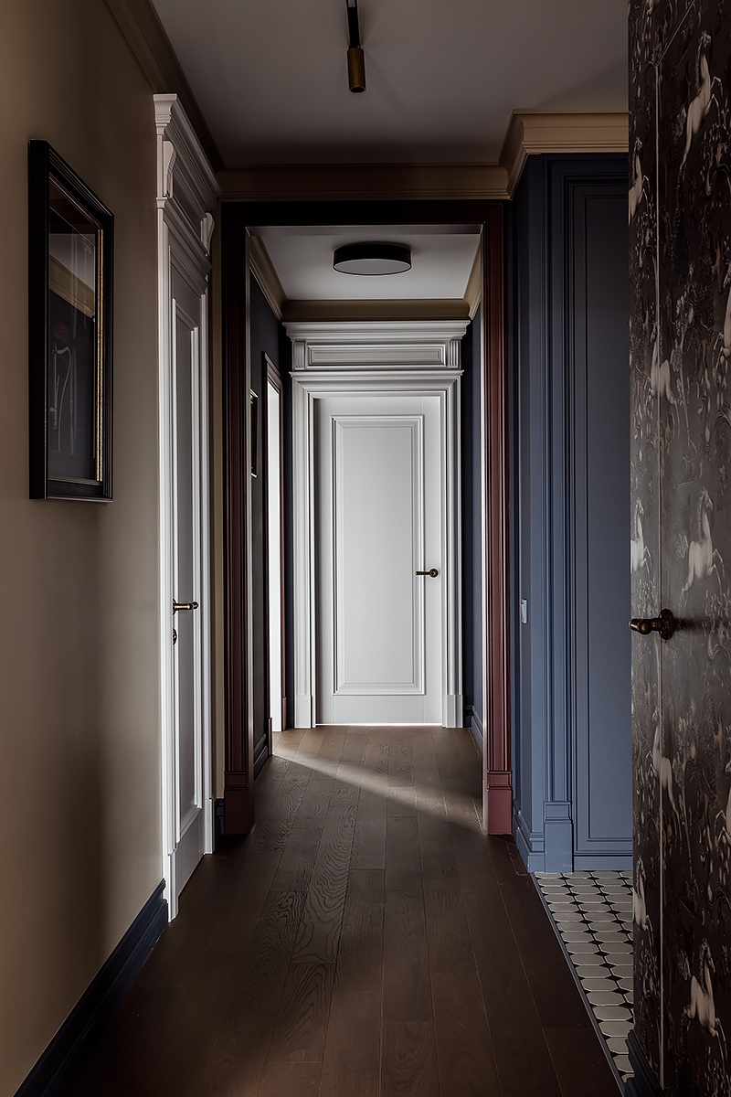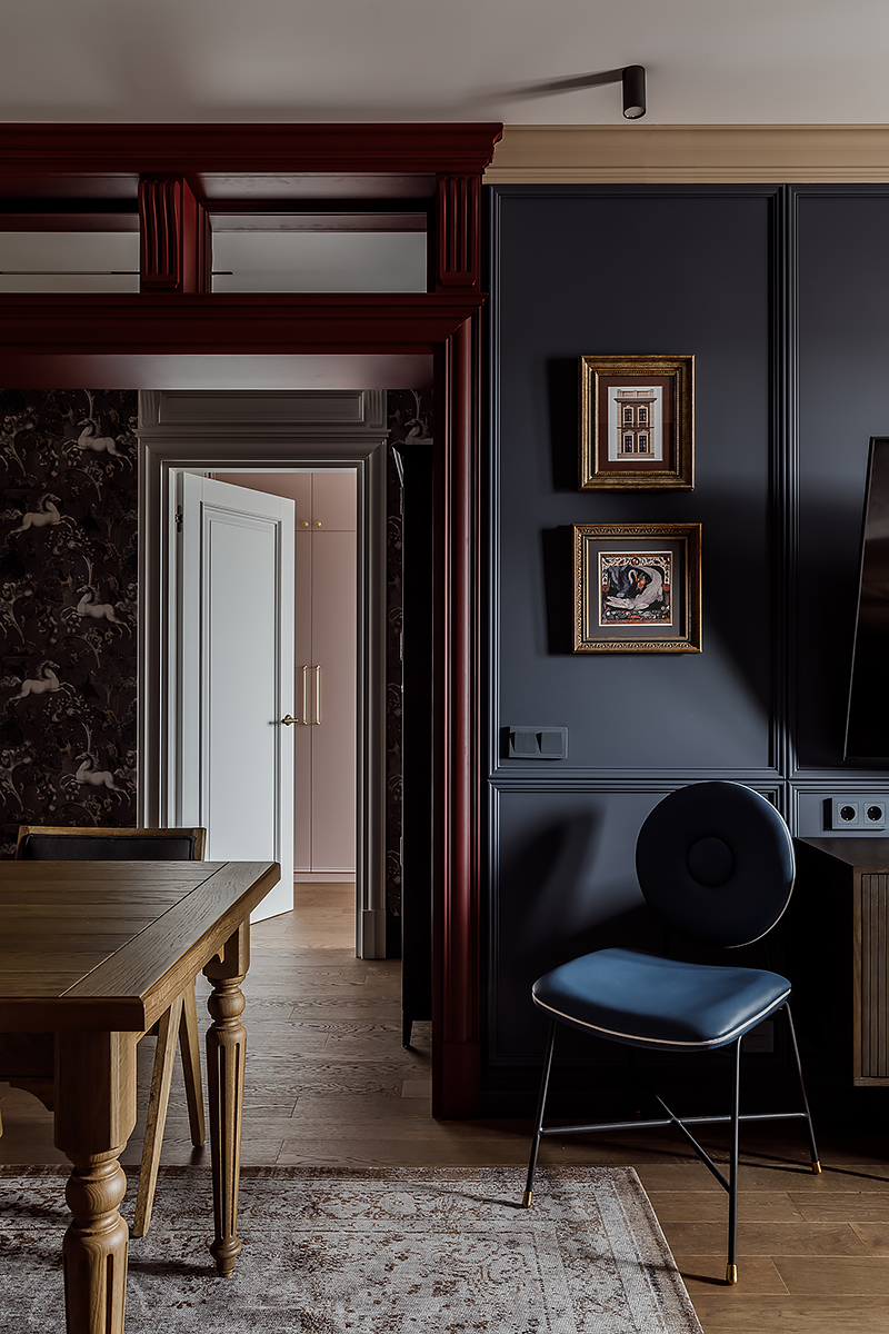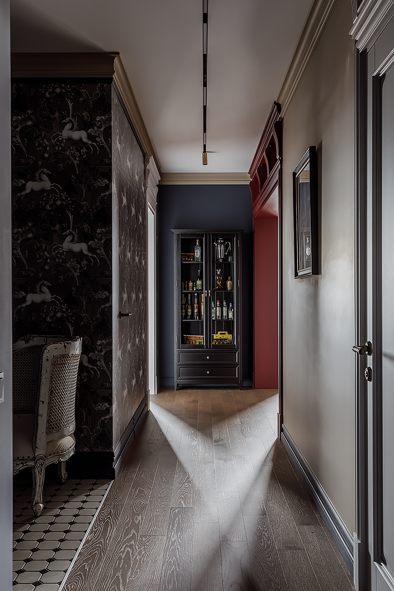 Тёмный паркет Coswick стал тем элементом, который объединил разностильные детали в цельную атмосферу, усилил глубину интерьера и привнёс природное тепло. Он подчёркивает индивидуальность и создаёт ту самую основу, с которой начинается дом — настоящий, живой, с характером.